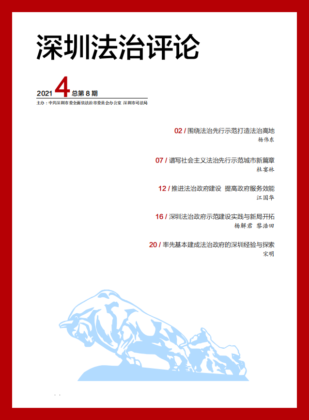《深圳法治评论》由中共深圳市委全面依法治市委员会办公室、深圳市司法局主办,定位于高端领导决策读物,聚焦深圳法治建设,刊发高水平、可实操的应用性政策研究,辅助市领导及本市党政机关领导干部法治建设方面决策,为支持深圳建设中国特色社会主义法治先行示范城市建言献策。